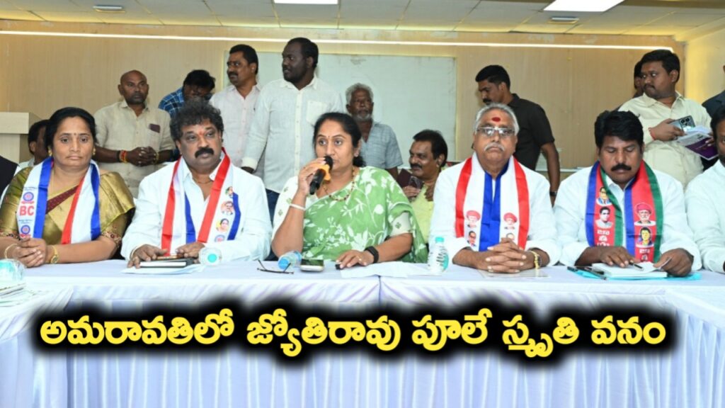అణగారిన వర్గాల ఆశాజ్యోతి మహాత్మా జ్యోతిరావు పూలే స్మృతి వనాన్ని అమరావతిలో ఏర్పాటు చేయనున్నట్లు మంత్రి సవిత ప్రకటించారు. వచ్చే ఏప్రిల్ 11వ తేదీన జ్యోతిరావు పూలే 200వ జయంతి భారీ ఎత్తున నిర్వహించనున్నామన్నారు. అదే రోజు జ్యోతిరావు పూలే స్మృతి వనానికి సీఎం చంద్రబాబునాయుడు చేతుల మీదుగా భూమి పూజ చేయనున్నామన్నారు. అమరావతిలో అయిదెకరాల్లో బీసీ స్టడీ సర్కిల్ ఏర్పాటు చేయనున్నట్లు తెలిపారు. ఈ బీసీ స్టడీ సర్కిల్ కు మహాత్మా జ్యోతిరావు పూలే పేరు పెట్టనున్నామన్నారు. 28 జిల్లా కేంద్రాల్లోనూ బీసీ భవనాలు నిర్మించనున్నామన్నారు. ఈ భవనాల కోసం ఇప్పటికే ఆయా జిల్లాల కలెక్టర్లకు స్థలాలు కేటాయించాలని ఆదేశించామన్నారు. బీసీ స్టడీ సర్కిళ్లు లేని జిల్లాలో నూతన స్టడీ సర్కిళ్లు నిర్మిస్తున్నామన్నారు. అమరావతిలో అయిదెకరాల్లో రాష్ట్ర స్థాయి బీసీ స్టడీ సర్కిల్ ఏర్పాటు చేయబోతున్నామన్నారు.